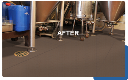 Non-porous flooring surface creates a waterproof membrane ideal for above grade installation.